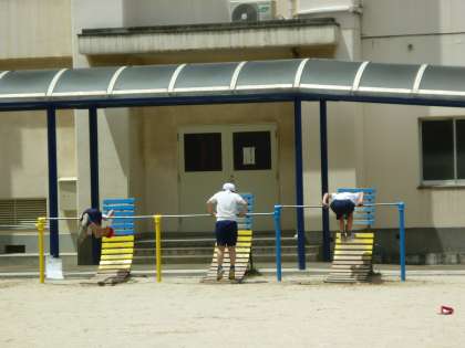 おにごっこやかけっこ、てつぼう、のぼり棒をしました。元気いっぱい活動しました。