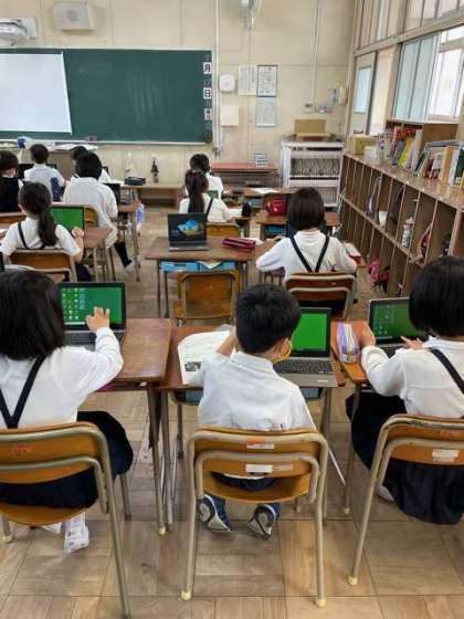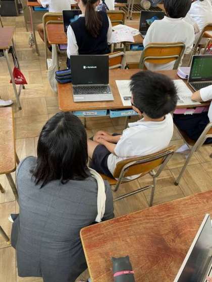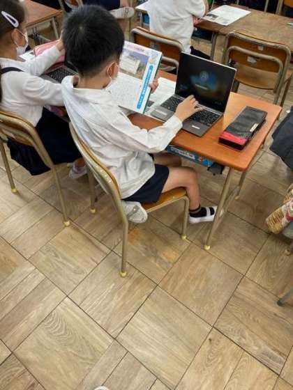 本日は、4年生のオンライン学習の日です。パソコンを自宅に持ち帰り、動画を視聴します。そのための練習をしています。慣れた手つきで素晴らしいですね。