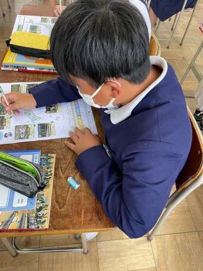 社会の復習をしています。