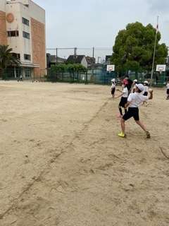 ソフトボール投げの練習です。