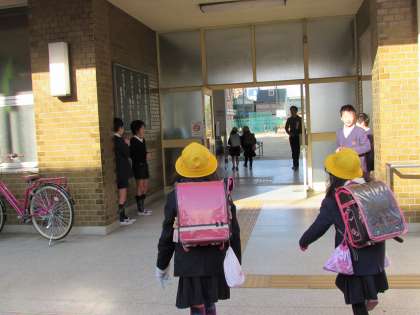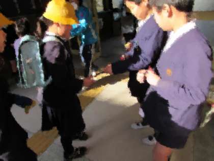 代表委員会によるあいさつ運動、今日は3日目です。朝は、玄関前も日陰になり、より寒さが厳しく感じられるのですが、代表委員の子どもたちと、登校してきた子どもたちの元気なあいさつの声が響きます。