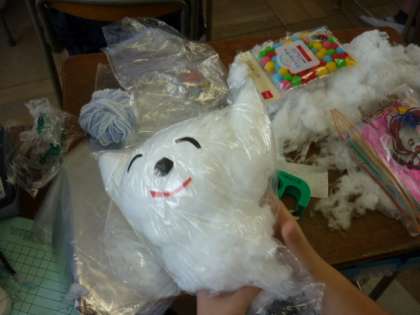 家庭から持ってきた材料を用いて、自分の友だちを作りはじめました。