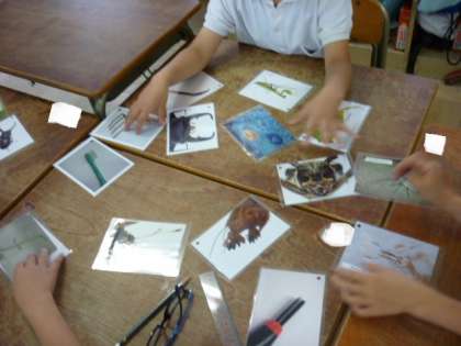 虫のカードを使って学習しました。グループでカードの組み合わせを考えました。うまく組み合わせできたかな?