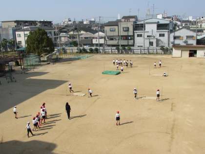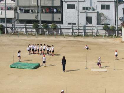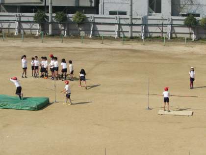 4年生の体育の学習の様子をご紹介します。4年生は、走り高跳びに取り組んでいます。自己記録を更新しようと、助走の仕方、踏み切るときの強さなどを意識して、跳びました。