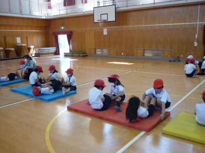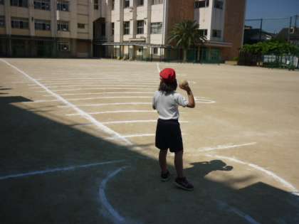 体力テストを行いました。とても暑かったですが、最後までがんばりました。