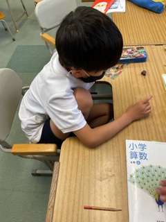 宿題を聞いてから、算数の学習です。