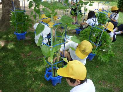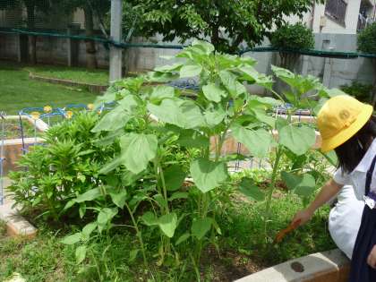 学習園に行き、雑草を抜きました。暑い日が続き、ずいぶん育ってきました。