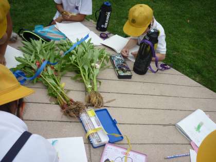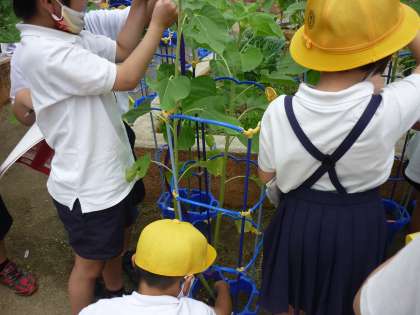 学習園に行き、ホウセンカの根を観察しました。ほかにも、ヒマワリの草たけを測りました。「前より大きくなってる!」「葉が多くなっている。」などの声が子どもたちから聞かれました。