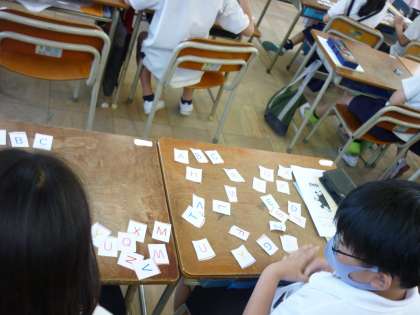 アルファベットを学習しました。発音の練習やカードを「A」から「Z」まで並べました。