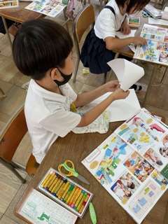 丸めたり、立てたり、色を塗ったりと、楽しそうですね。