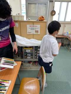 宿題の説明を聞いたり、塗り絵をしたりしています。