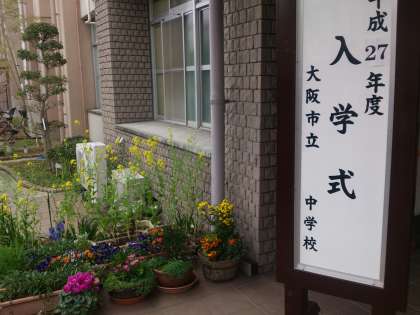 中学校の制服に身を包んだその姿は、2週間前の姿からまた一回り大きく、たくましく成長したように思いました。中学校の校庭の桜や、咲き誇る色とりどりの花も、新1年生をあたたかく迎え、歓迎しているようでした。
