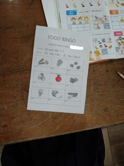 9月2日(木) 食べ物ビンゴをしました。 友だちに「好き」か「嫌い」か聞き、カードに記入しました。