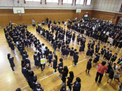 入学してから1週間がたち、1年生の子どもたちも少しずつ学校生活に慣れてきたことと思います。今日の1時間目は、1年生を迎える会を行いました。1年生と、2年生から6年生の子どもたちが一緒に行う、初めての集会です。