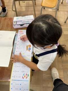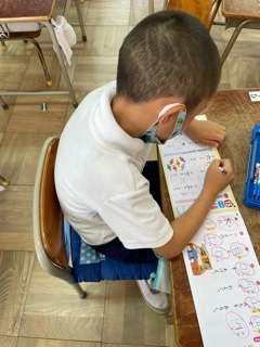 机やノートから少し距離を開けて字を書くと、全体がよく見えて配列よく書けますよ。