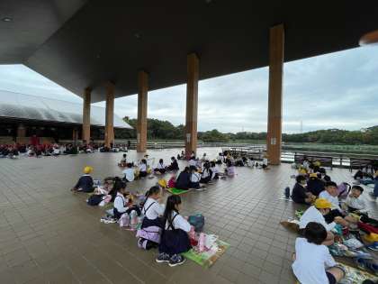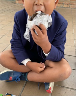 大きなおにぎりをパクリ。とてもおいしそうですね。