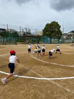 ドッジボールをしています。
