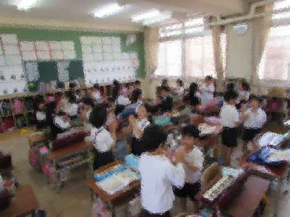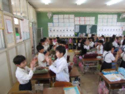 2年生の音楽の学習の様子です。2拍子、3拍子のリズムで、友達と手を打ちあわせて遊んでいます。