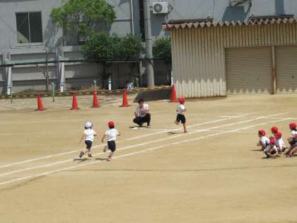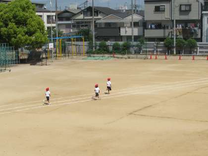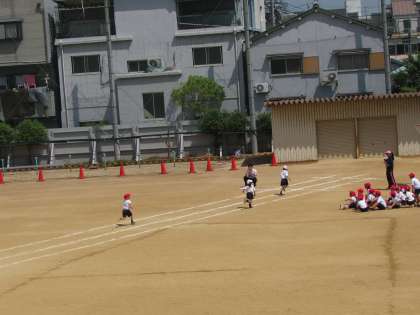 1年生も今日の体育で、50メートル走にチャレンジしました。50メートルはとっても長いけれど、1年生の子どもたちは頑張りました。