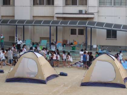 恒例の校庭キャンプがありました。4,5,6年の子どもたちが、校庭のテントで