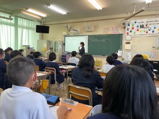 本日は、大阪市教育研究会算数部の先生方を招いて、授業研究を行いました。
