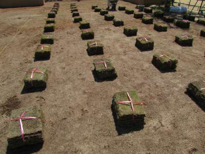 今週、5月13日(水)には、全校の児童で新しい芝を貼ります。今日、その新しい芝が運ばれていました。