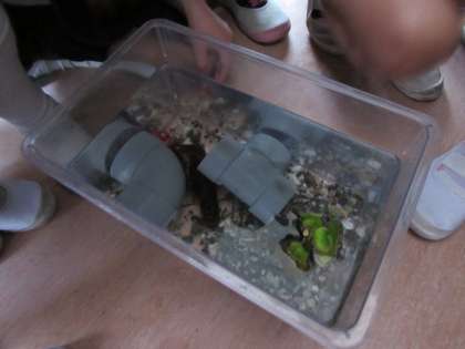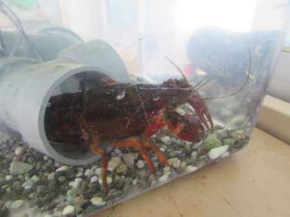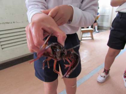 2年生の教室に、ザリガニがやってきました。水槽の中でゆっくりと動くザリガニに、子どもたちも興味津々です。