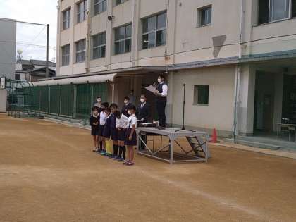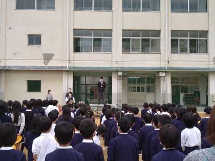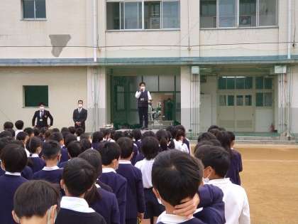 全校朝会では、校長先生から「互いに学びあう」ことについてお話がありました。