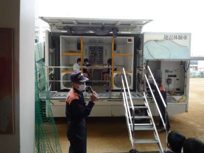 起震車・水消火器・倒壊家屋救出・毛布担架・DVD視聴による防災学習などを行いました。