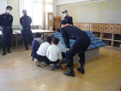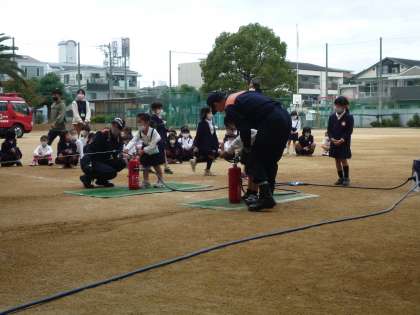 児童の防災意識を高めたり、知識を身に付けるために、区役所・消防署の協力で、防災教育を行いました。