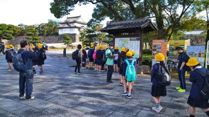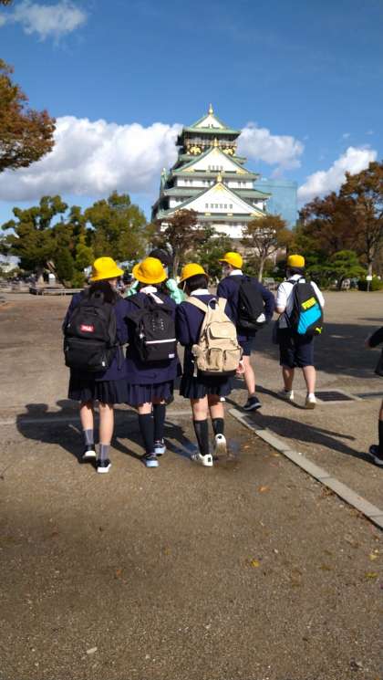 本日は、大阪城周辺とピース大阪へ社会見学を行いました。歴史・戦争の話や疑似体験、映像を見たりなどしてきました。