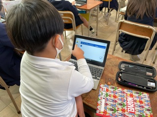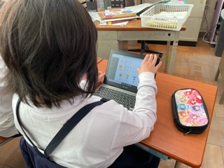 パソコンでデジタルドリルをしています。