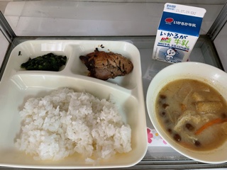 11月16日の献立は、なまりぶしの生姜煮、なめこの味噌汁、ほうれんそうのごま和えです。