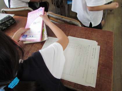 5年生の学習の様子です。国語「動物の体と気候」の学習です。プリントを使って、筆者の考えをまとめようとしています。