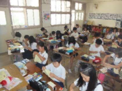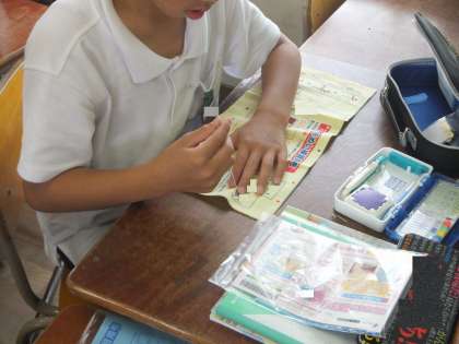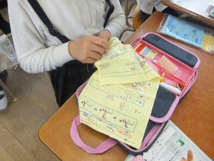 本日、5年生は家庭科の学習で、初めての裁縫に取り組みました。本日は、針に糸を通し、玉止め・玉結びに取り組みました。初めはなかなか上手にできなかったのですが、繰り返していくうちに、どんどん慣れていき、スムーズにできるようになっていきました。