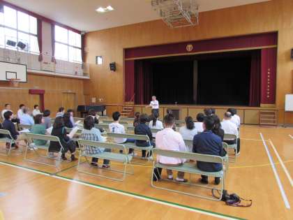 12時から、講堂でPTA予算総会を行いました。本日の議事は、平成27年度のPTA事業計画や平成27年度のPTA会計予算についての審議を行いました。どちらの計画案にも、賛成をいただきました。