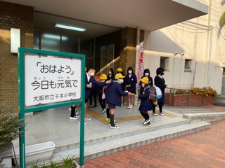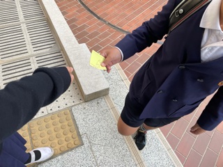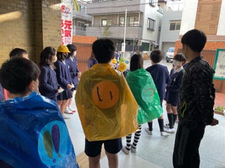 鮮やかなマントを身に着けた方が、気持ちのよいあいさつを広めてくれていますね。