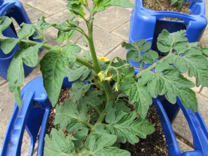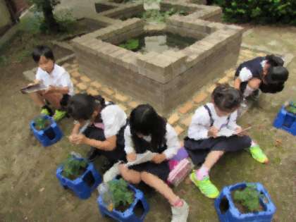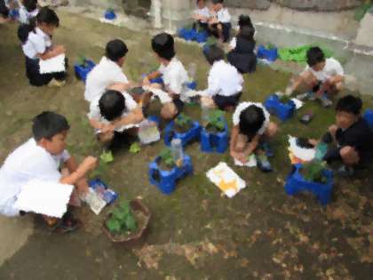 本日の2時間目、2年生は生活科の学習で、ミニトマトの観察を行いました。今日、見ると、多くのミニトマトに、小さな黄色い花が咲いていました。観察をして、子どもたちは「花のところに白い毛が生えている」「葉っぱがトマトのにおいがする」と、気づくことができました。