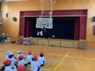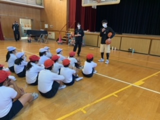 夢授業でプロバスケットボールチーム『大阪エヴェッサ』が来てくれました。プロのチームの授業にみんなも興味深々です。