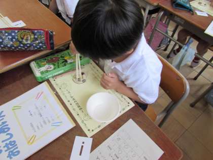 本日の2・3時間目、2年生の食育を行いました。北津守小学校の栄養職員の方にお越しいただき、「お箸の使い方」についての学習をしました。お箸を使って3種類、9個の豆をカップからカップに移すことを通して、どうすれば上手に箸を使えるのかを学びました。