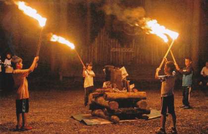 点火式では、代表の子どもたちがちょっと引き気味に点火!!