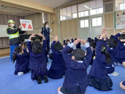本日は小学校で初めての防犯教室でした。できるだけ一人で帰らず、寄り道もしない。知らない人にはついていかない。一時停止線は必ず止まる。歩行者は右側を歩くなど、身近に起こりうる事象をわかりやすく、説明してくれていました。子どもたちは、楽しく、でも真剣に聞き入っていました。またお家でも、防犯や交通安全について、お話をしてあげてください。