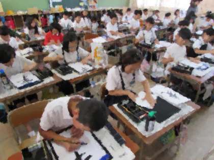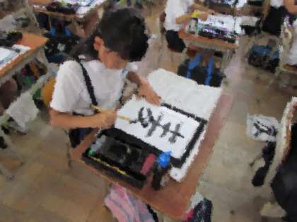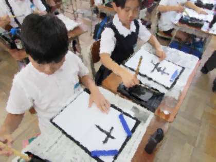 4年生の学習の様子をご紹介します。4年生は、毛筆書写の学習で、「麦」という字を書いています。横画の長さ、線と線の間隔などを意識して、大きく、しっかりと書いていきました。