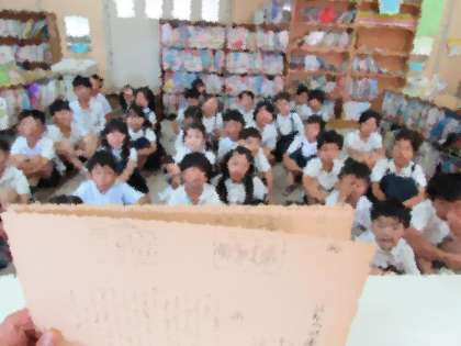 図書室を利用する時間に、各学級では先生による読み聞かせや紙芝居も行っています。今日は、2年生が図書の時間の終わりの5分間、紙芝居の時間です。子どもたちは、集中して紙芝居に見入っていました。今日、読んだのは「はだかの王様」でした。