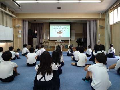 最初に養護教諭から、手洗いのしかたの説明がありました。