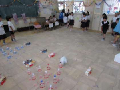 本日、土曜授業として、千本子ども祭を行いました。2年生以上の各クラスがお店を出し、1年生から6年生までの子どもたちはペア学年でグループを作り、お店をまわっていきました。それぞれのクラスで工夫されたお店があり、とても楽しい千本子ども祭になりました。ペア学年で、しっかりと計画を立ててお店をまわることができ、今年は「迷子」もとても少なかったです。