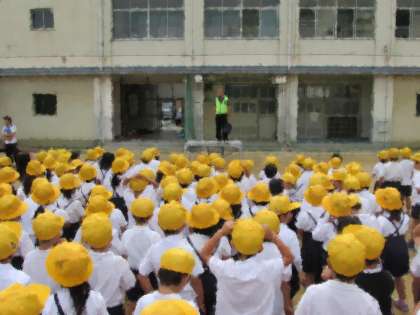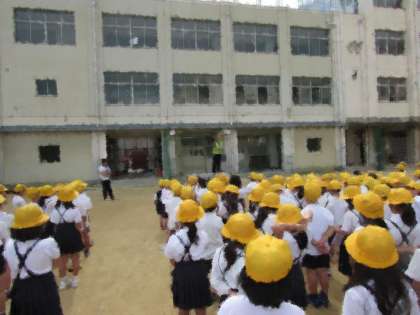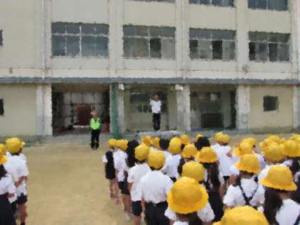 月曜日の朝、全校朝会の様子をご紹介します。初めに、学校長からの話です。ごみの落ちていない学校にしましょうという話、給食の食べ残しが多くなっています、食べ残しを少なくしましょうという話です。
