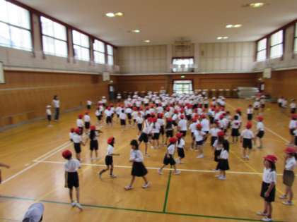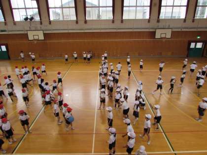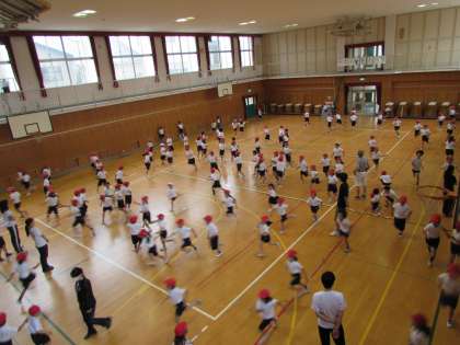 3時間目は、講堂に移って、ドッジボールやふえ鬼をして遊びました。今日は朝から雨で、運動場で遊べなかった分も、たっぷりと汗を流しました。