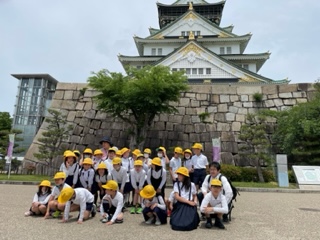 立派な3年生が立派な大阪城をバックにぱちり。