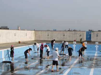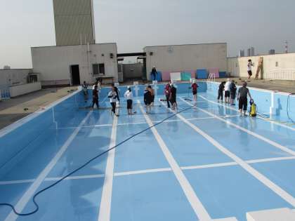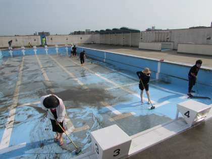 本日の放課後、職員でプール清掃を行いました。初めは、どろどろだったプールも、ぴかぴかになりました。